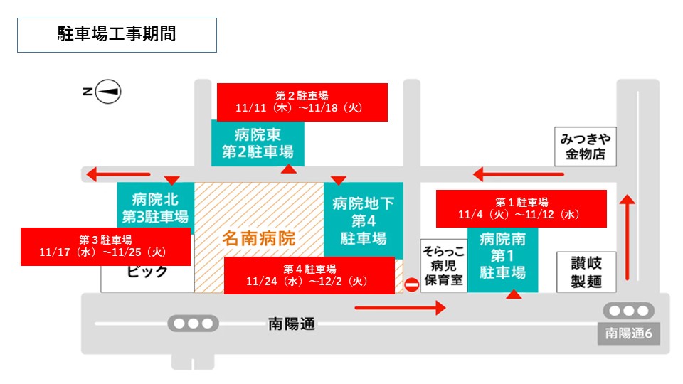 工事期間中は、工事中ではない駐車場をご利用下さい。