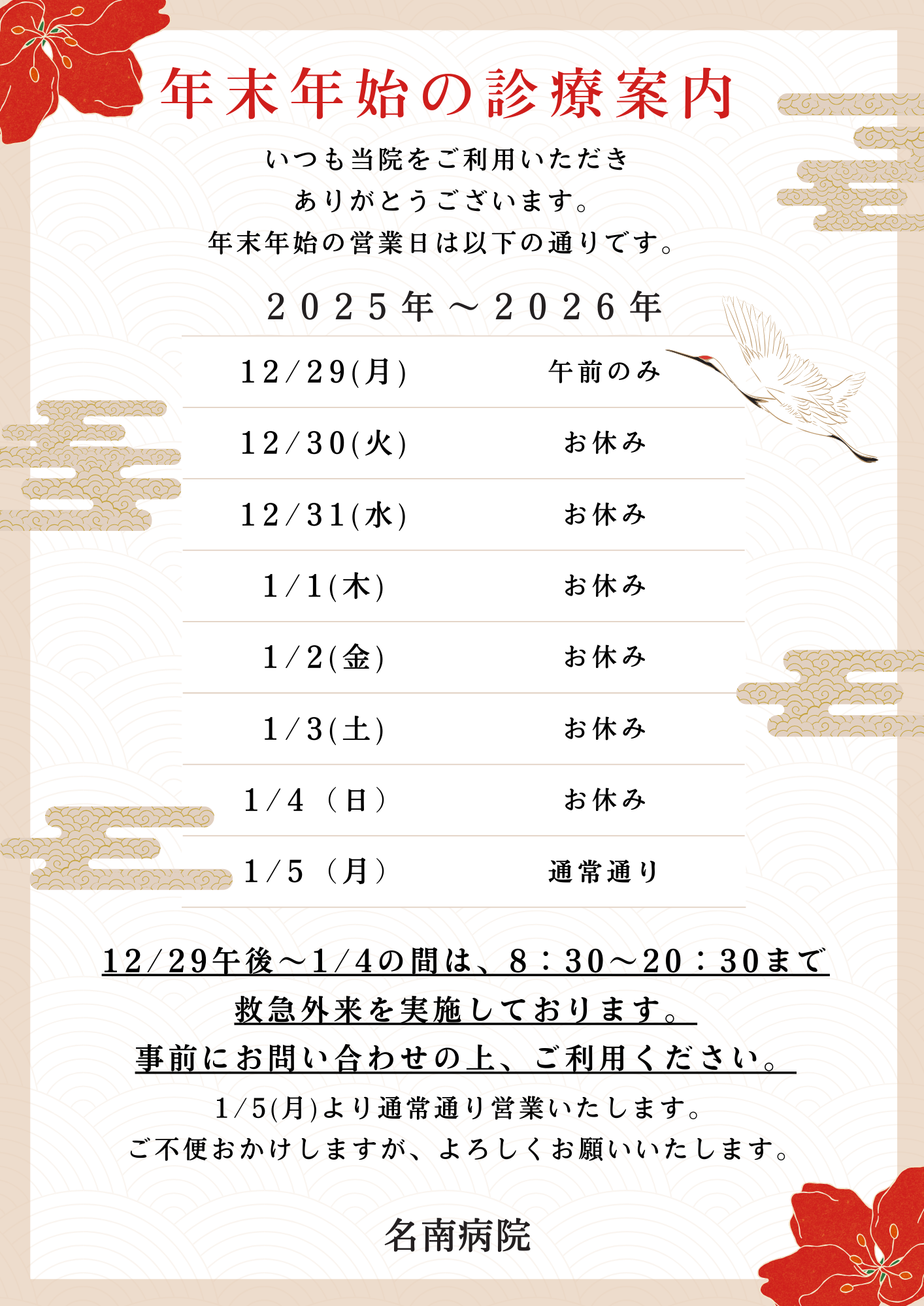 年末・年始診療のご案内