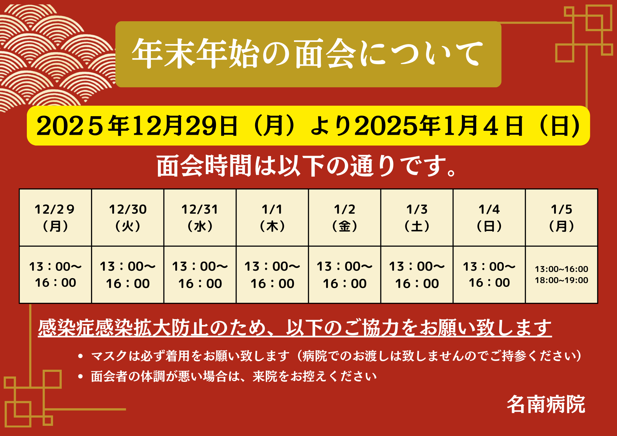 年末・年始面会のご案内